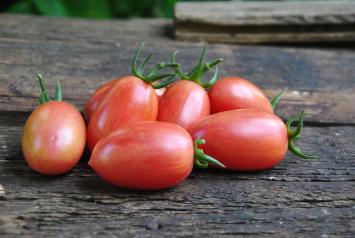 Pomidor ‘Maglia Rosa’ to wczesna, bardzo plenna odmiana koktajlowa o półzwartym pokroju, wyhodowana przez Freda Hempela (Kalifornia, USA). Powstała z krzyżówki odmian Striped Roman i Black Cherry. Roślina ma wysokość 90–120 cm, półsamokończący wzrost i gęste, regularne ulistnienie. Doskonale sprawdza się w uprawie pojemnikowej, na balkonach i w małych ogrodach. Owoce są małe, owalne, typu Roma, o masie około 25 g, z delikatnie szpiczastym końcem i niezwykle dekoracyjnym ubarwieniem — różowo-złotym z centkami i paskami. Wnętrze jest soczyste, o bardzo przyjemnym, owocowym smaku, łączącym słodycz z lekką kwaskowatością.